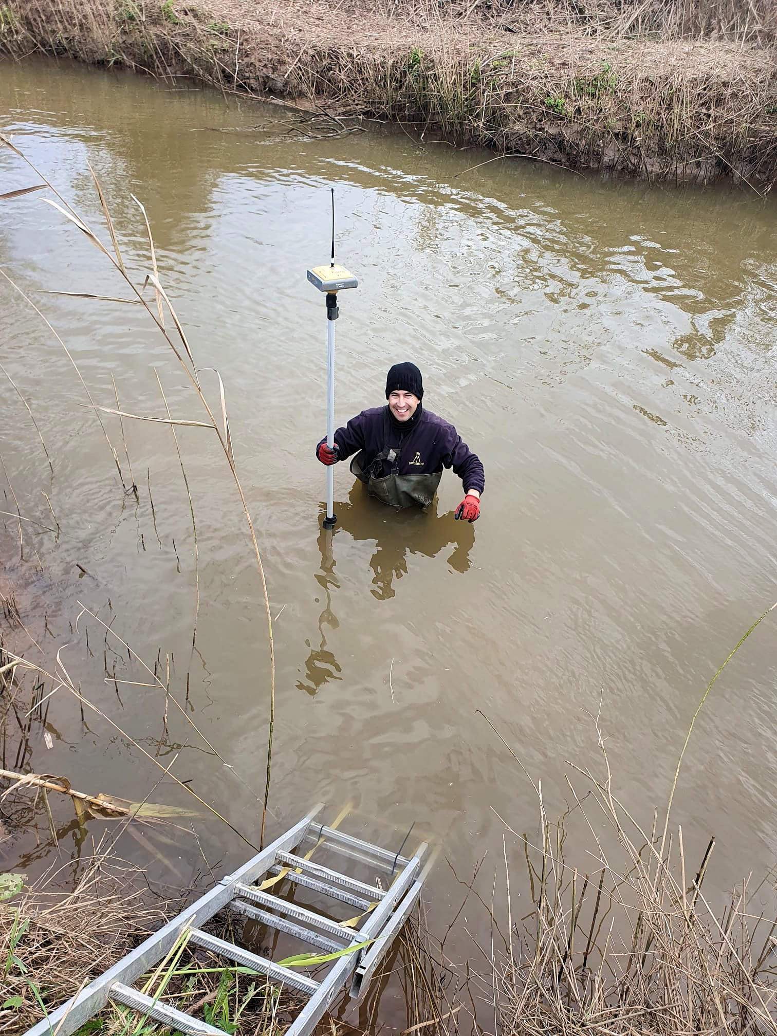 Levantamento Batimétrico – Mede profundidade e relevo do fundo dos corpos d’água (apenas em águas pouco profundas)